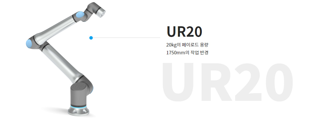 1750mm의 작업 반경과 20kg의 페이로드 용량을 갖춘 UR의 차세대 코봇은