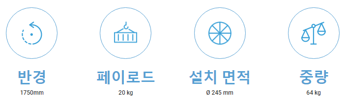 | Payload | 20 kg (44.1 lbs) at full CoG offset and in the entire workspace |